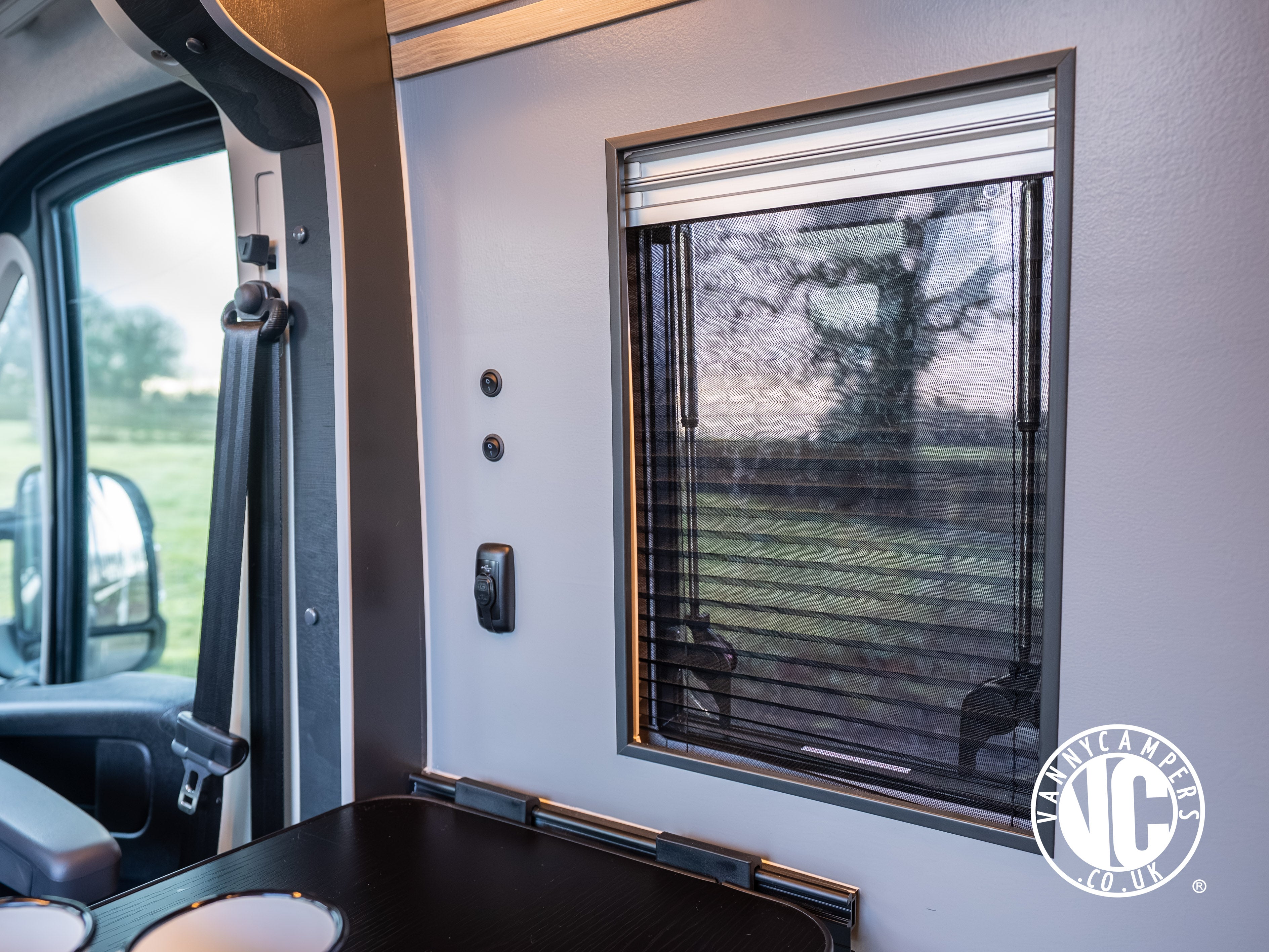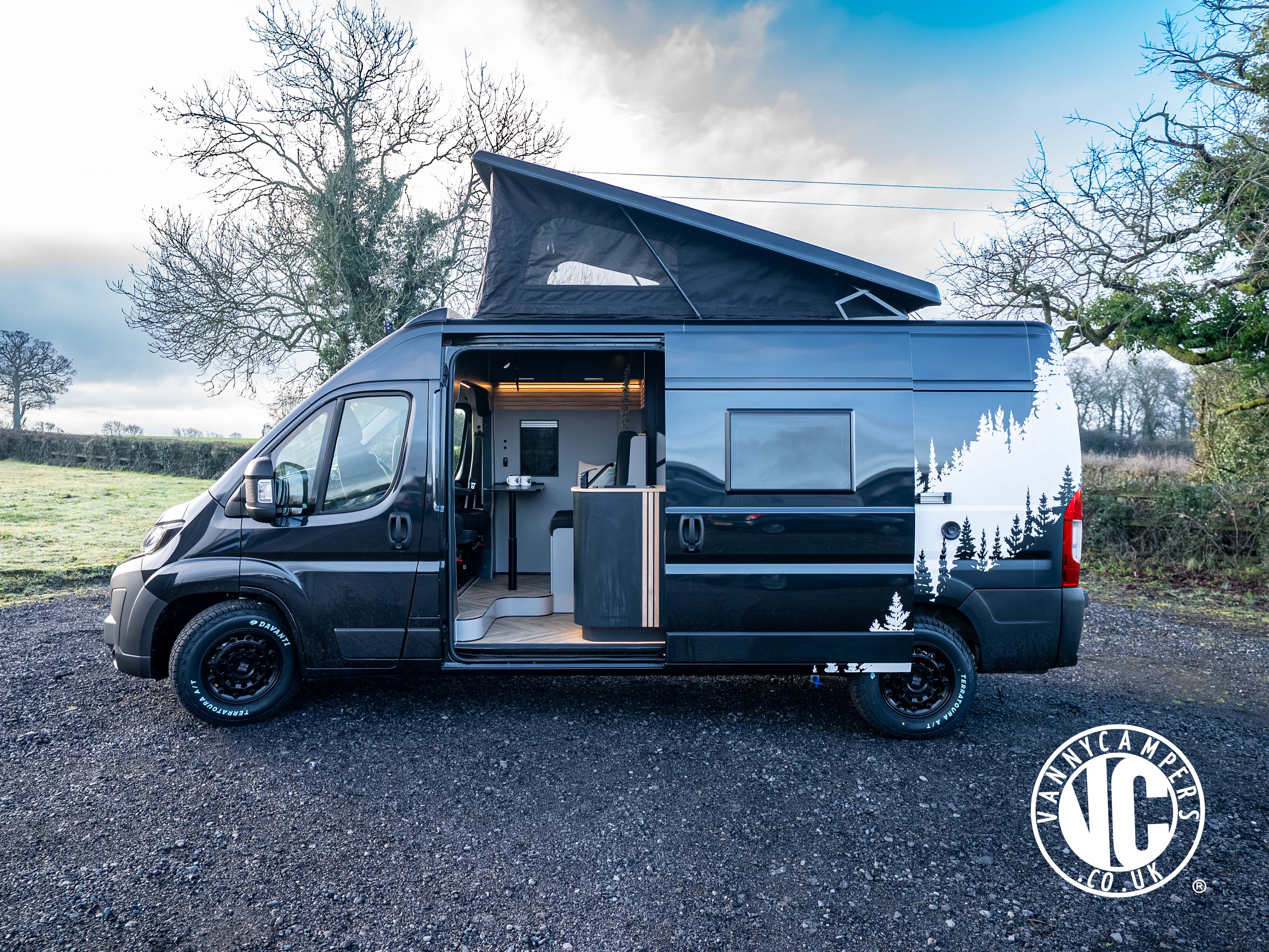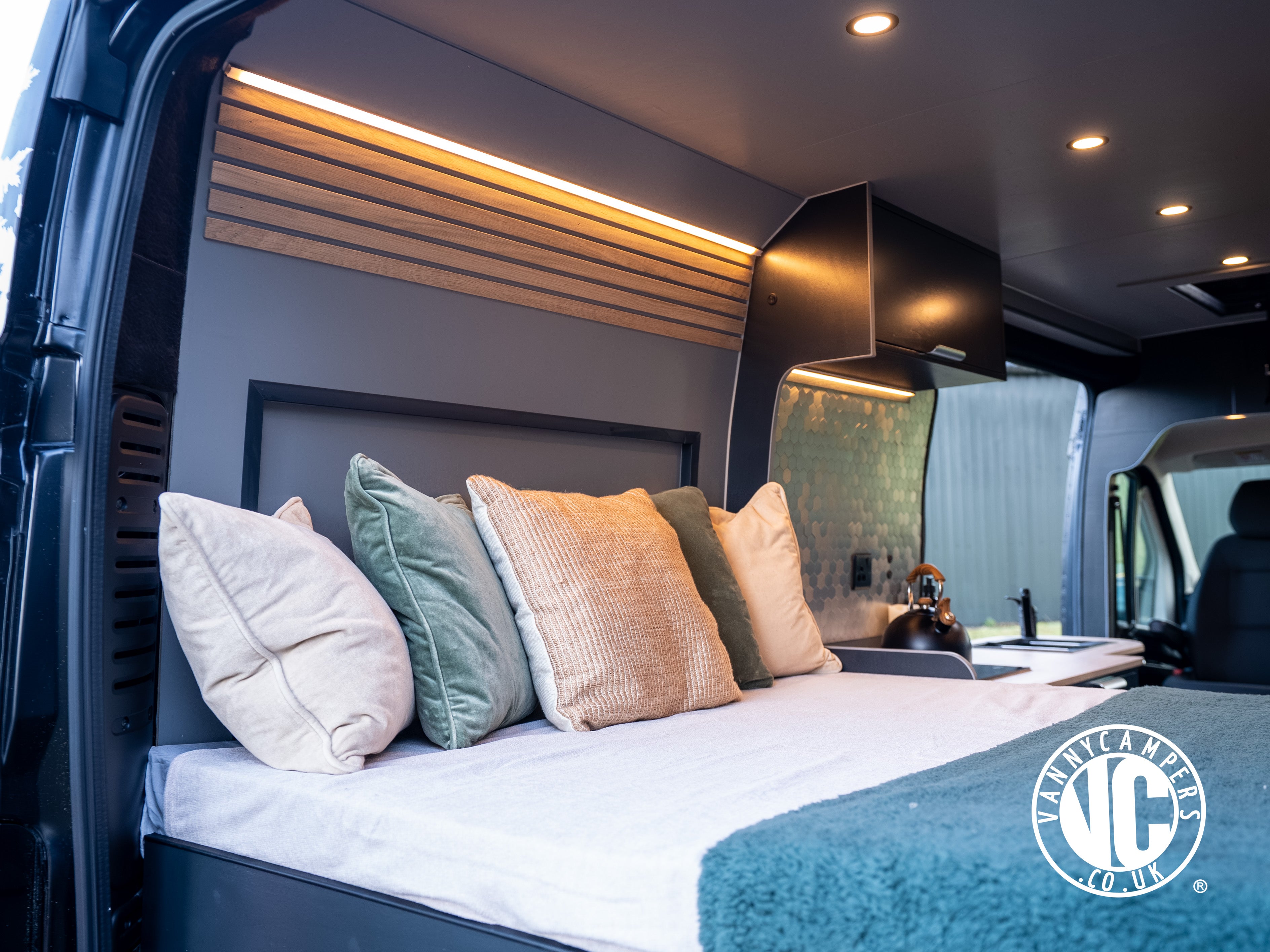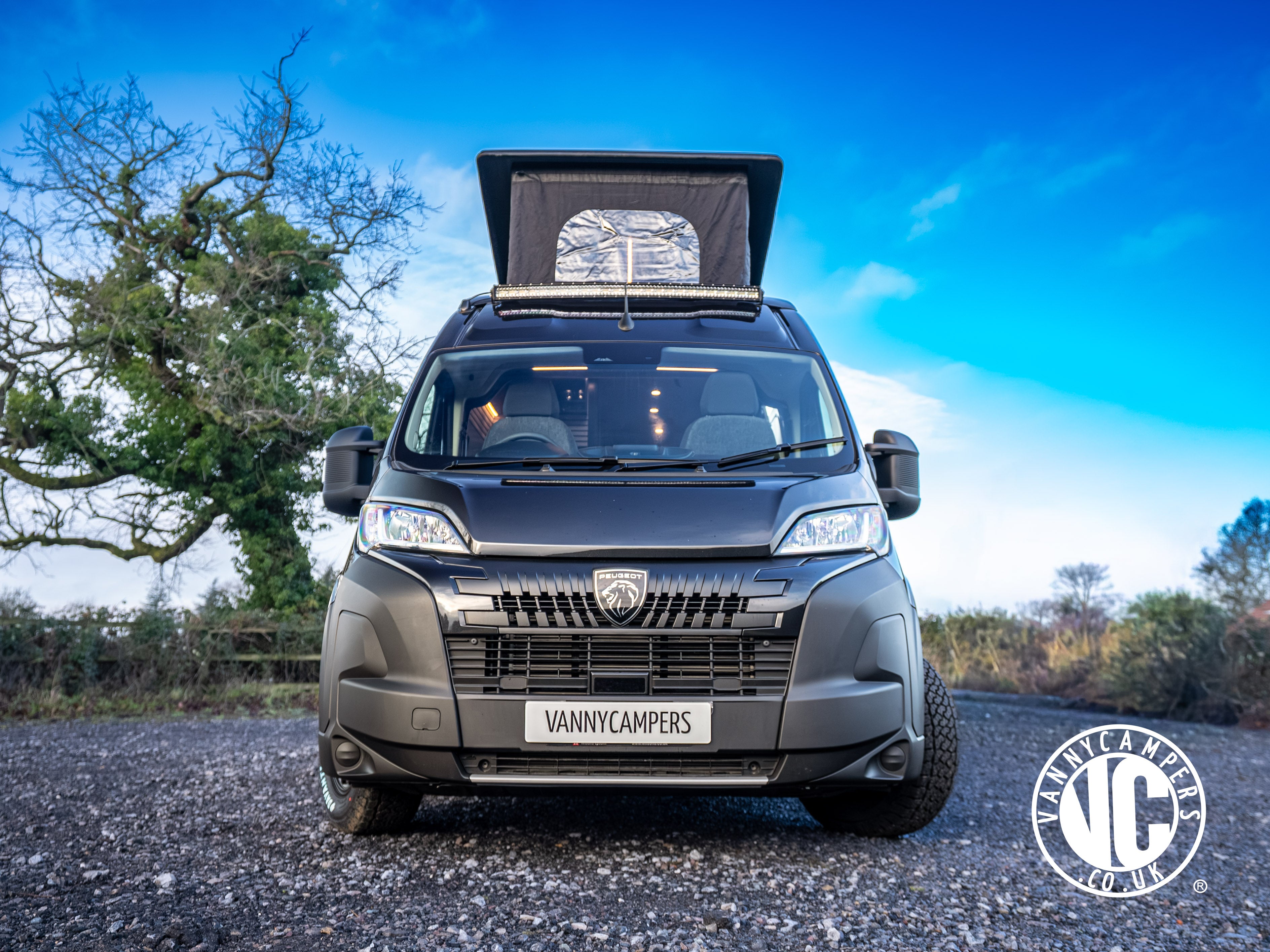 Check out Saffi, a fully off-grid, gas-free campervan designed for adventure. Sleeping and seating up to four, she’s perfect for family getaways, weekend escapes, or longer road trips. This camper is an automatic Peugeot Boxer with less than 250 miles on the clock, combining modern comfort, practicality, and style for a true home-away-from-home on the road. The interior furniture is built using lightweight plywood, keeping the van agile and efficient without compromising on quality. Outside, an LED light bar mounted to the front of the van and controlled from the driver’s seat adds extra visibility and a rugged edge for off-grid adventures.