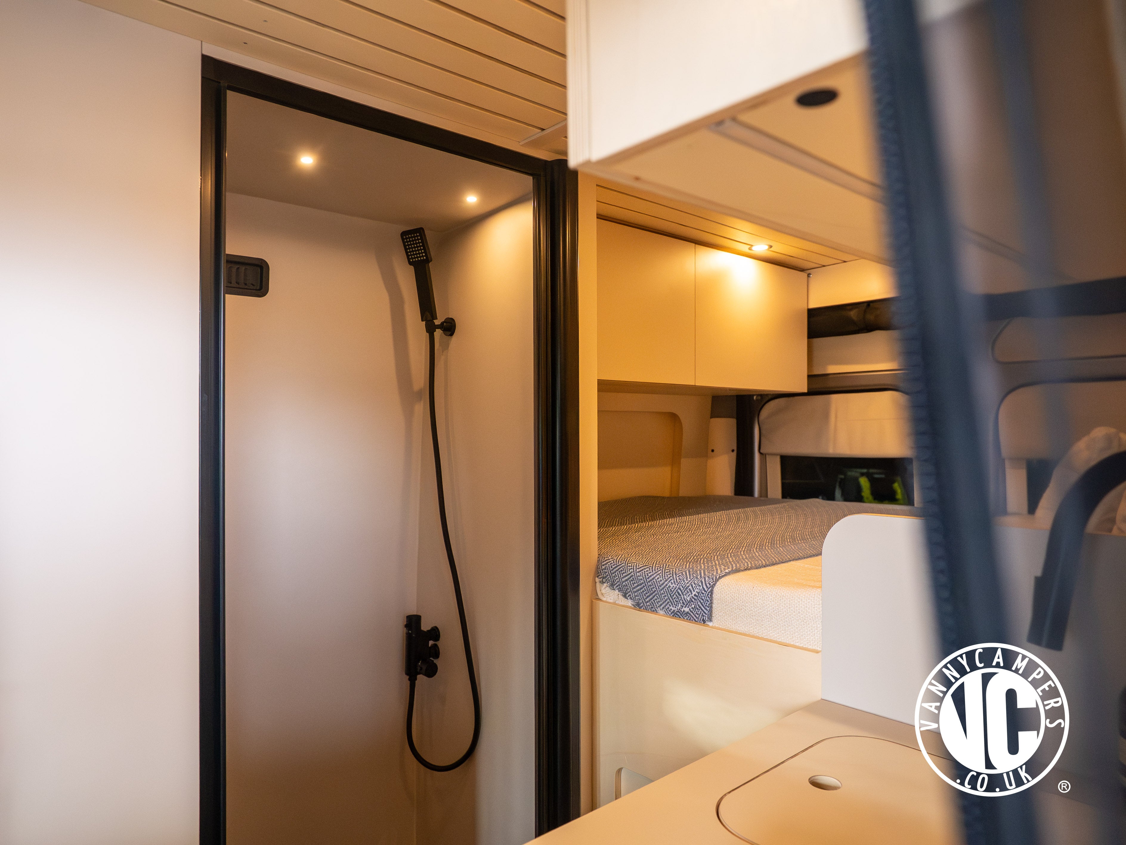 This brand-new, high-end build is designed for long-term adventures and off-grid living, combining practical design with head-turning style. With less than 500 miles on the clock, this beauty is fresh out of the showroom!