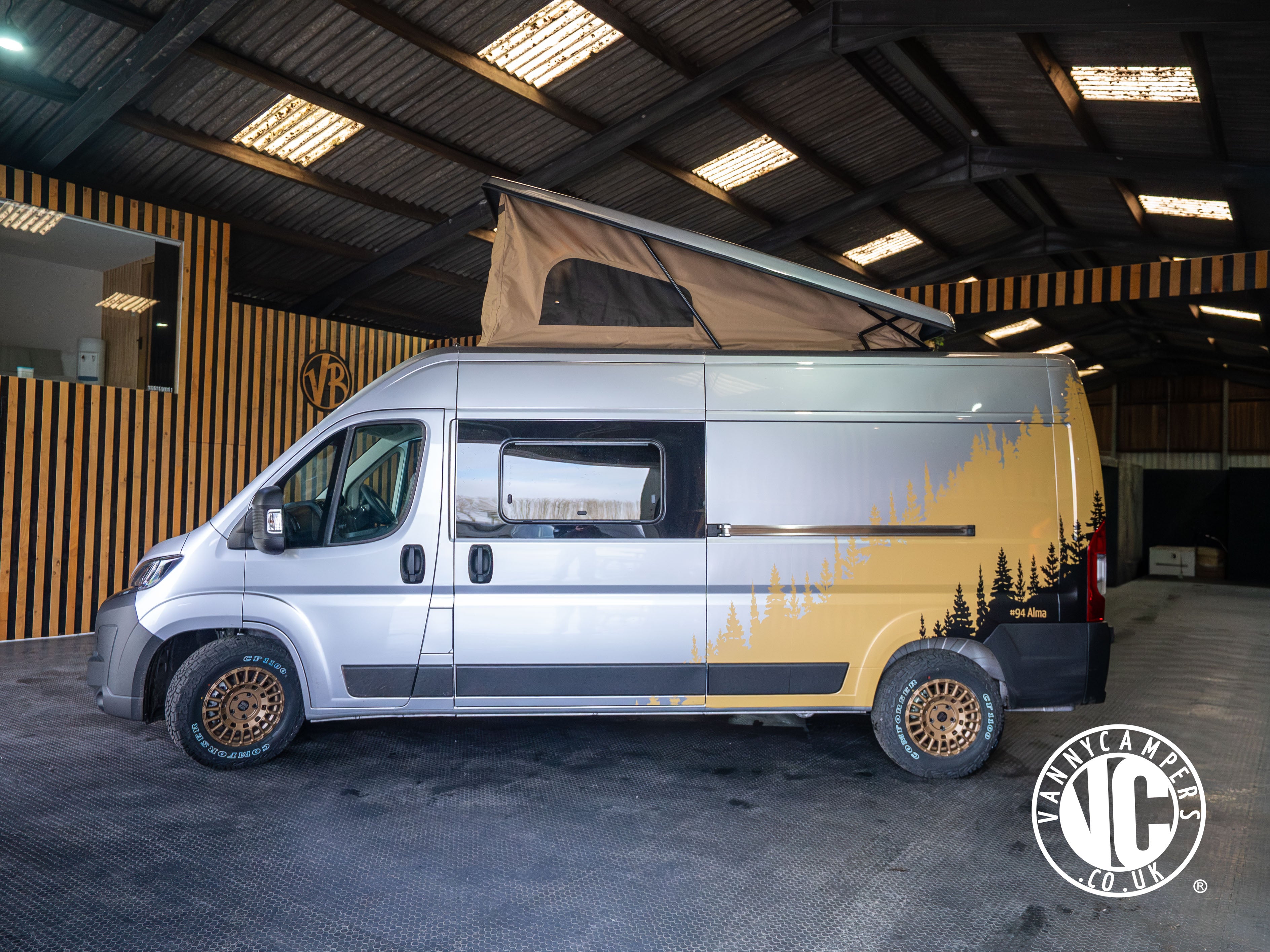 Alma is our latest BRAND NEW 4-berth automatic beauty. Think spa on wheels, tranquil, light, with cotton beige finishes and soft pastel yellow accents.