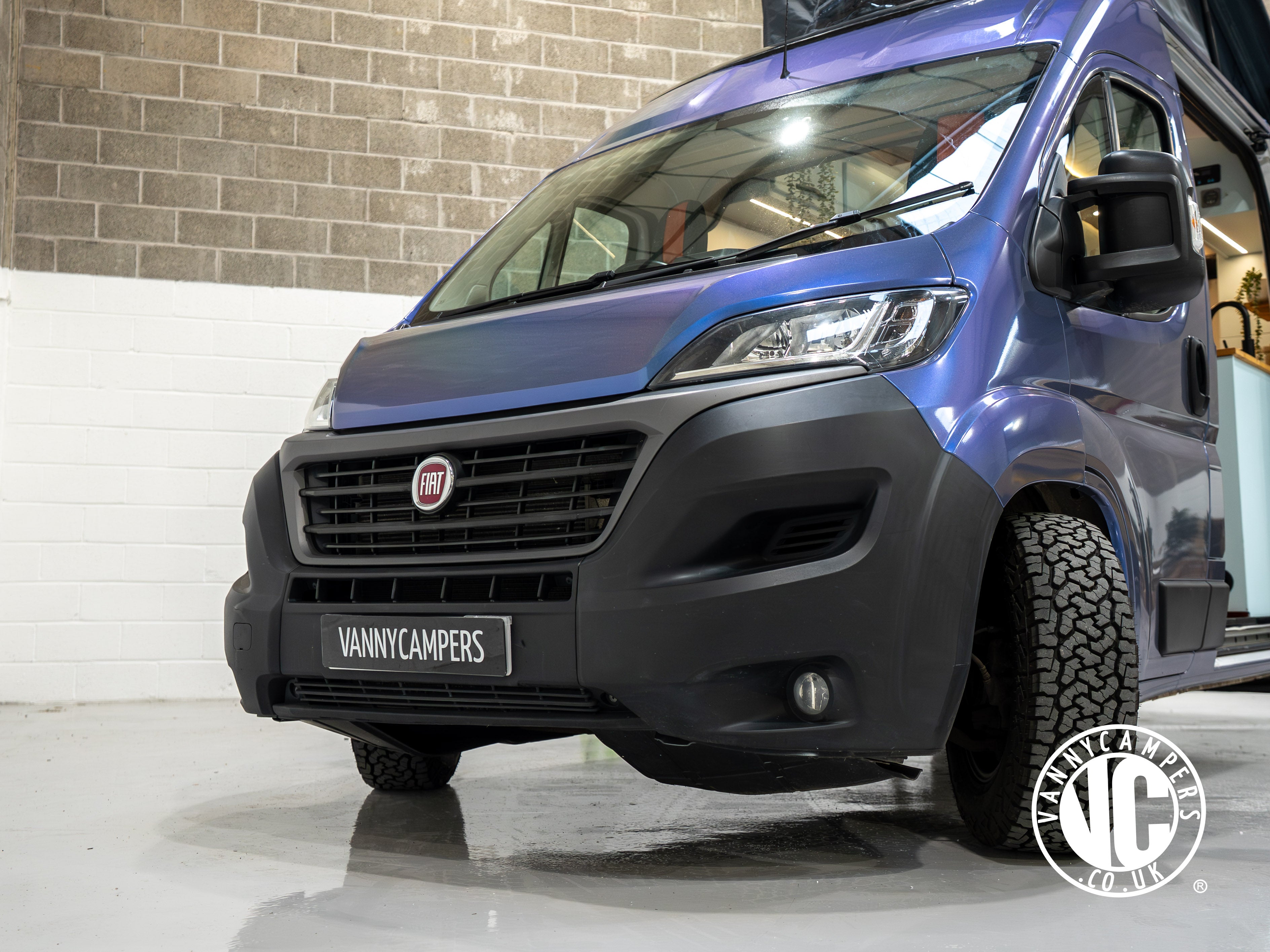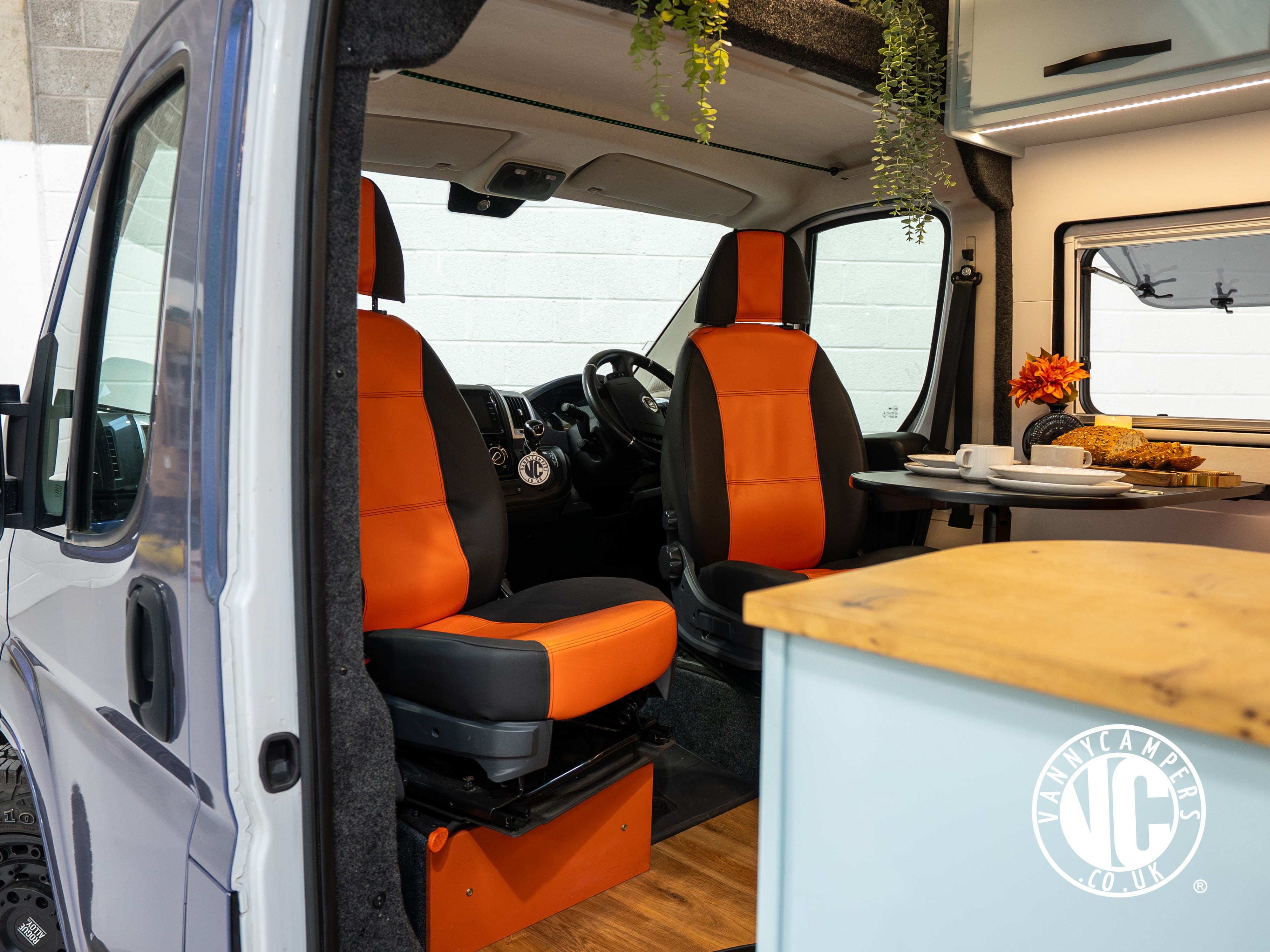 This 2021 LWB Automatic Fiat Ducato, fully ULEZ compliant, has been freshly converted to an exceptional standard by the hardworking team at Bobil Vans. Now finished with a stunning full-body rainbow wrap that’s guaranteed to turn heads wherever you go. Designed with both functionality and high-end luxury in mind, Livia comfortably sleeps and travels four people with safety and ease. With the water tanks neatly mounted underneath the van, there’s plenty of internal space for storage. Every element has been carefully handcrafted by a dedicated team of craftsmen, with thoughtful details throughout from the tasteful lighting to the wireless phone charger creating a beautifully finished interior that’s as practical as it is stylish.