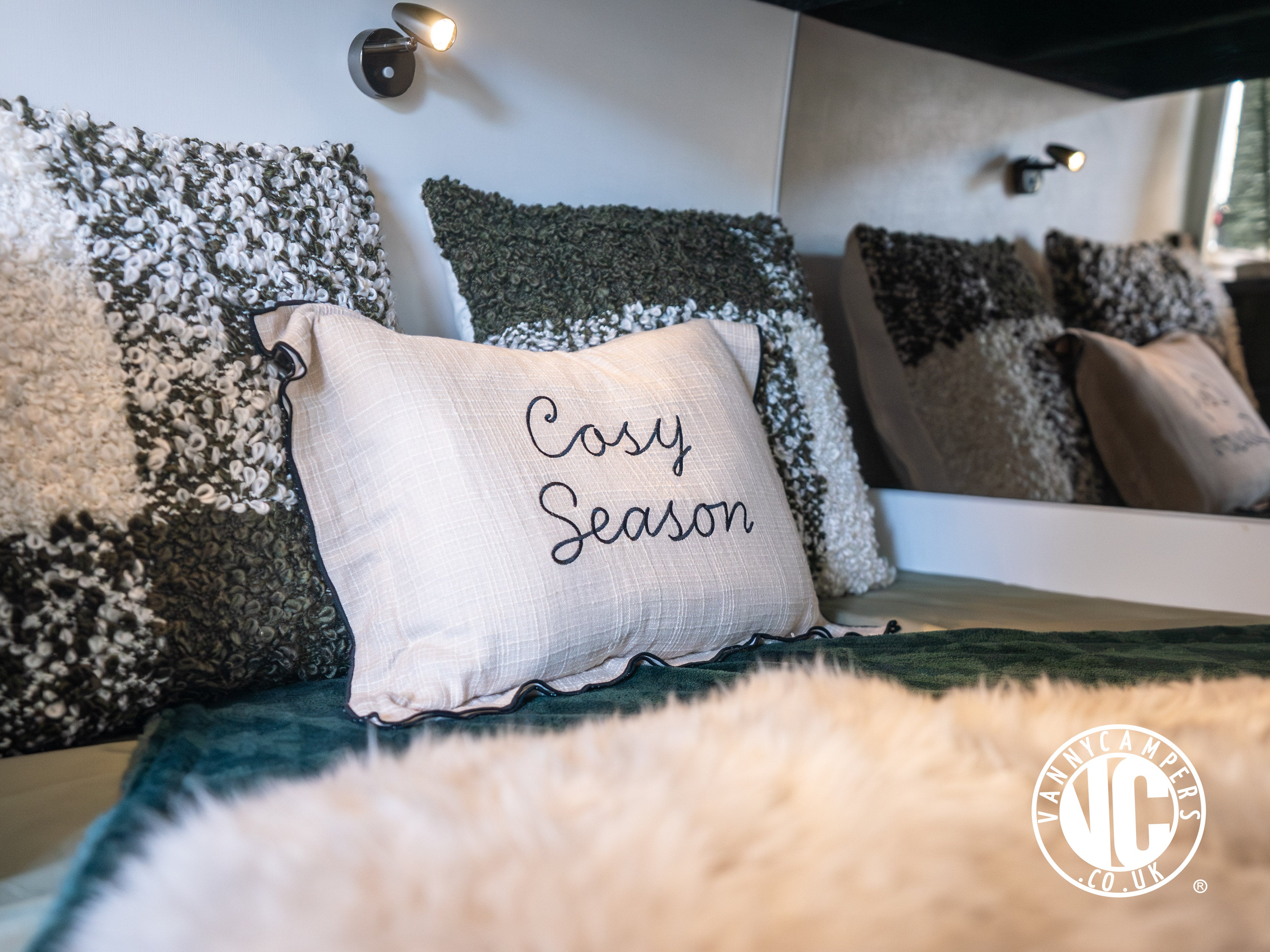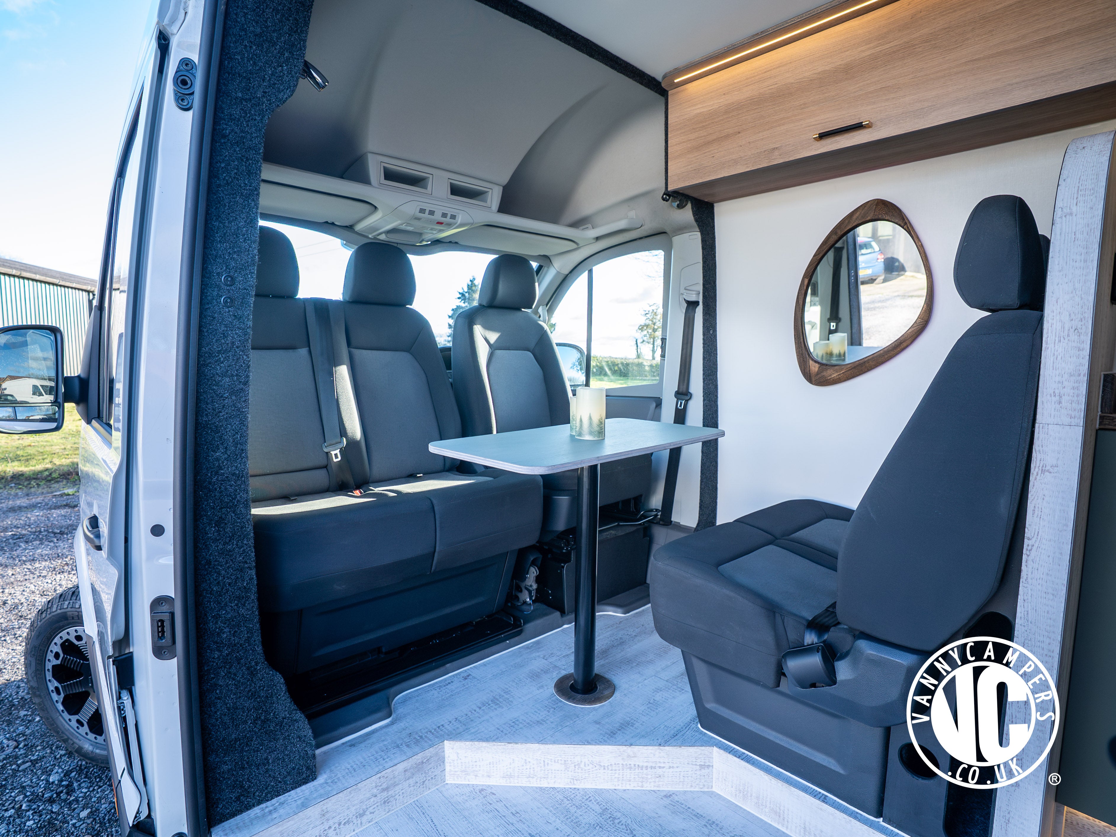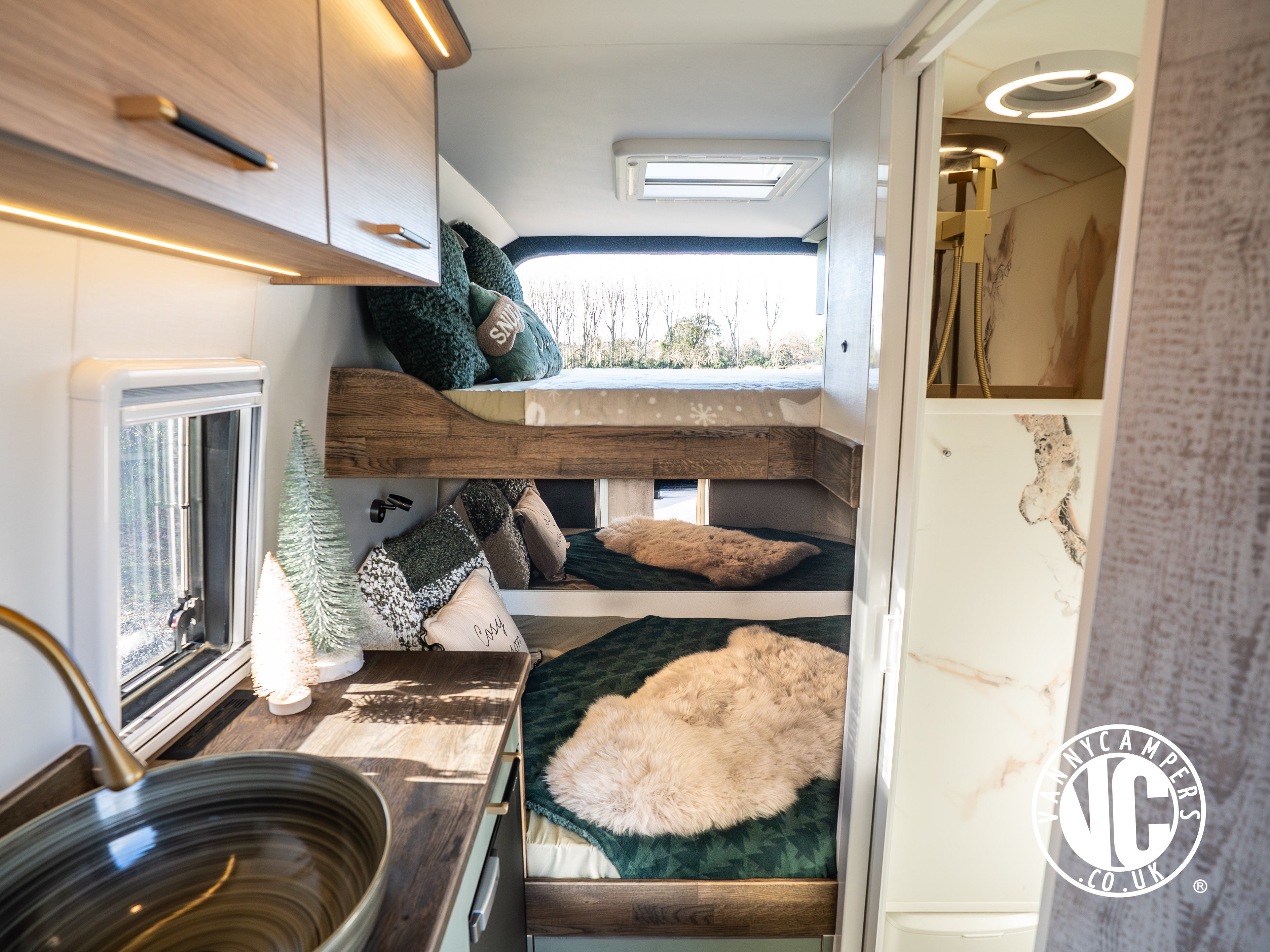 Designed for comfort, practicality, and a touch of luxury, Ember is packed with clever storage, modern electrical systems, and all the amenities you need for a stylish VannyCampers winter adventure. Whether it’s a weekend getaway or a longer escape, Ember’s got you covered with a welcoming living area, and a warm, inviting atmosphere that makes every trip feel like home.