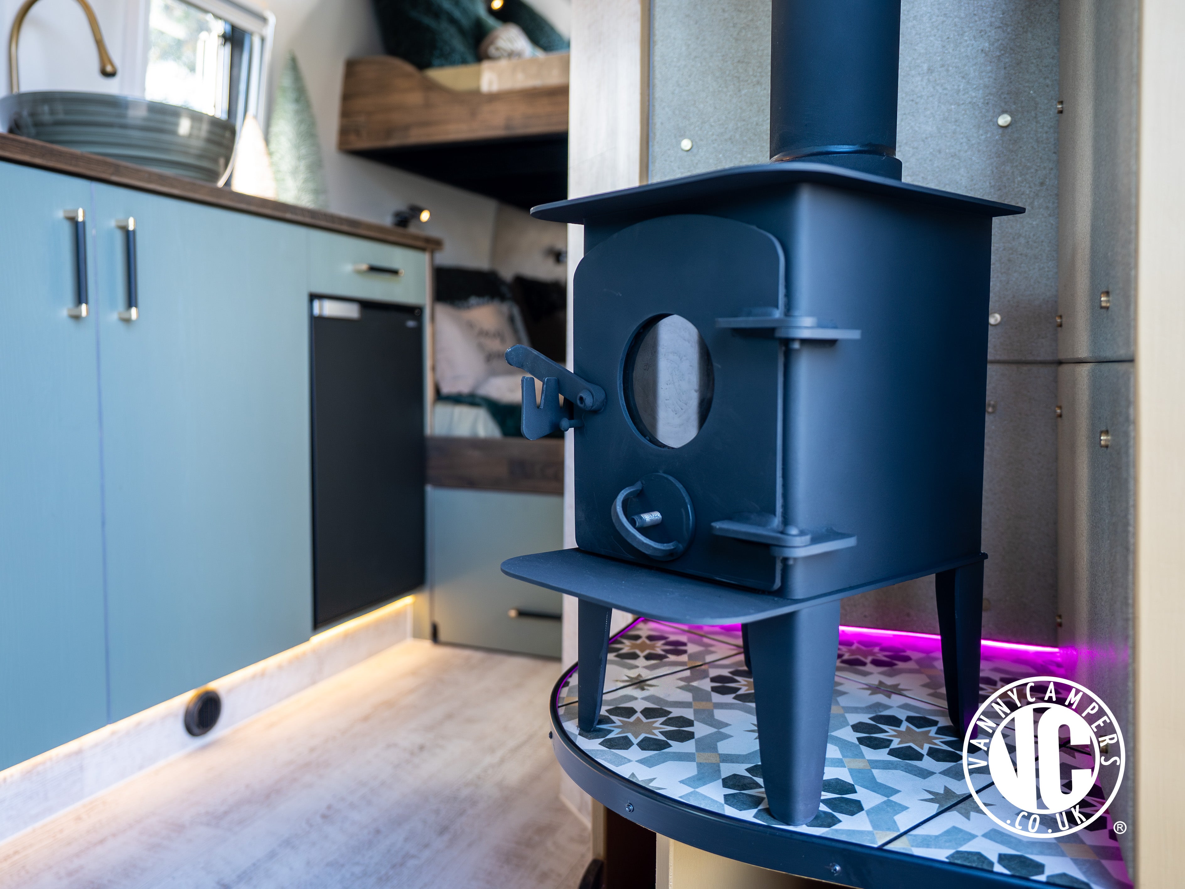Feast your eyes on Ember, the freshly converted 4-berth VW Crafter from the brilliant team at VanLife Builds. This winter wonderland on wheels is a cosy off-grid haven, complete with its very own built-in mini log burner, earthy green tones, and rich chocolatey worktops perfect for those chilly evenings on the road.