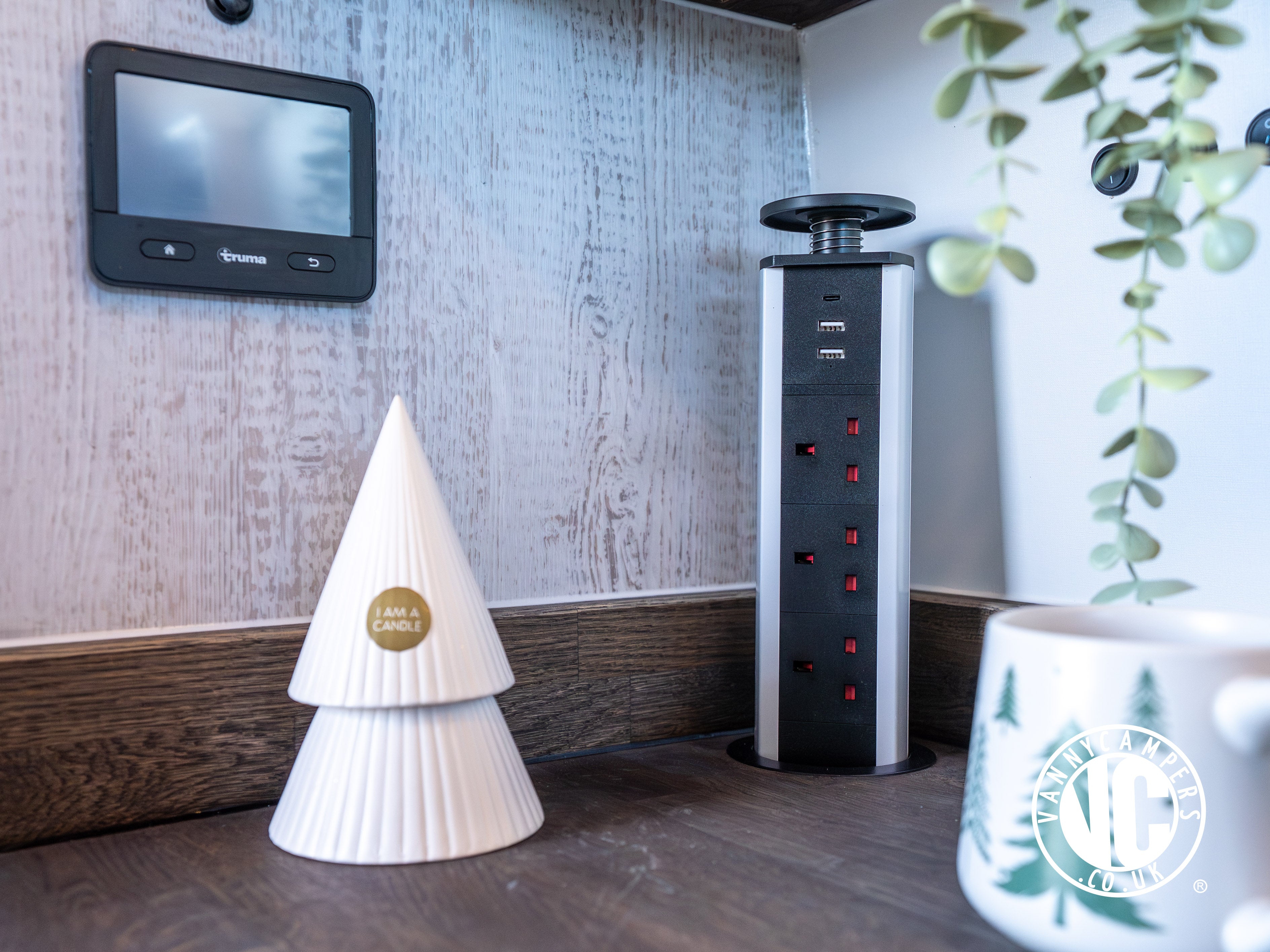 - Pop-up electrical socket with 3x 240V sockets, 2x USB-A, 1x USB-C