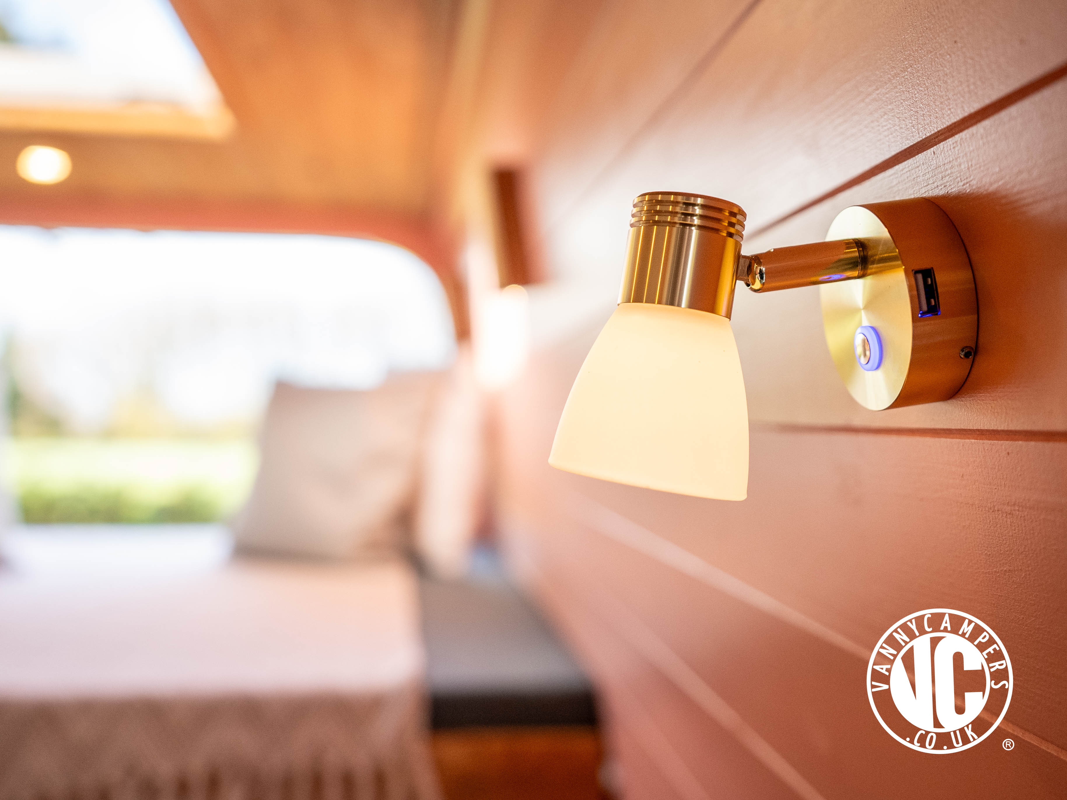 Florence’s got you covered when it comes to bedtime, with room to sleep up to five people across three beds. The huge double bed slides out to 175×190 cm, a second double bed is in the pop-top, and a child’s bunk bed is tucked under the slide-out double. Comfort is ensured with 11 cm thick firm foam mattresses for both the double and bunk beds. Oak reading lights (×2) and USB sockets in the cupboard add convenience, while the pop-top bed details are to be supplied.