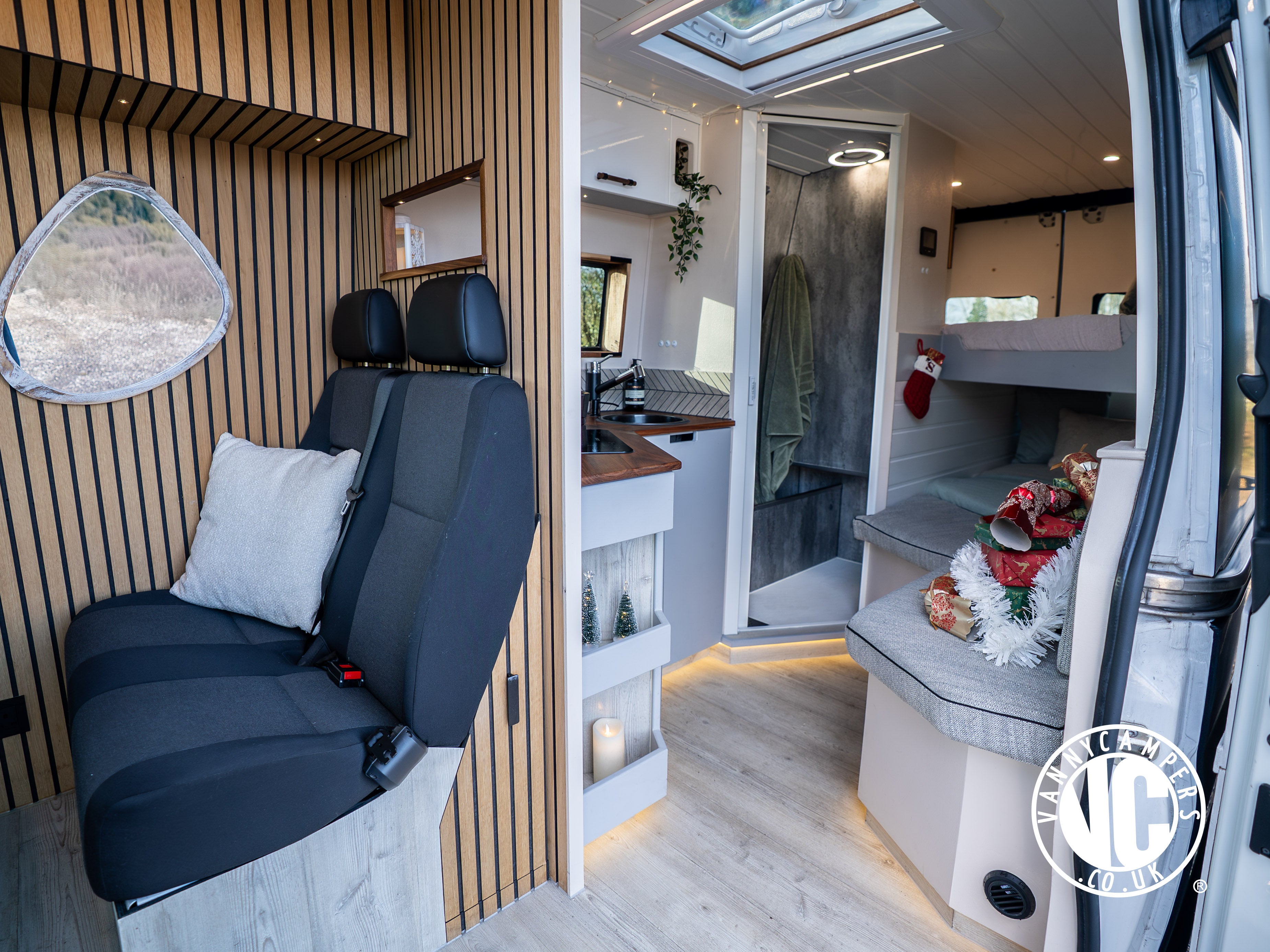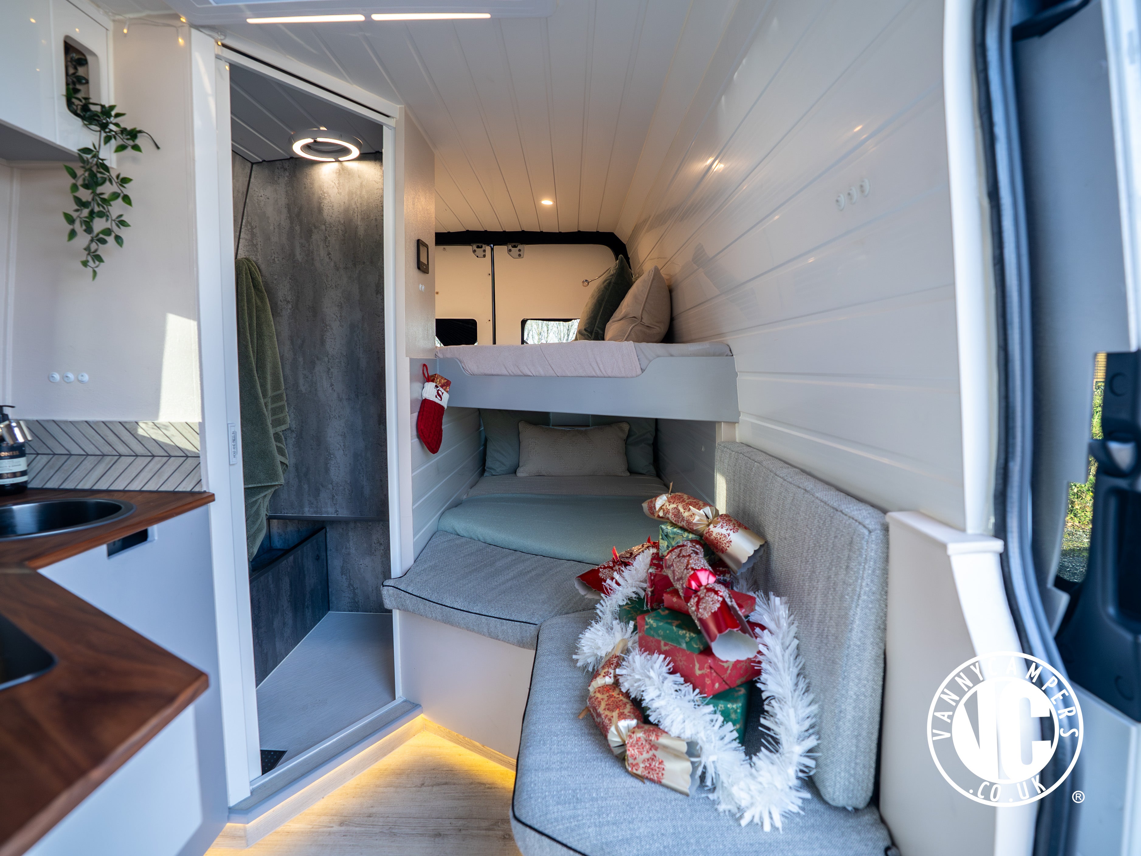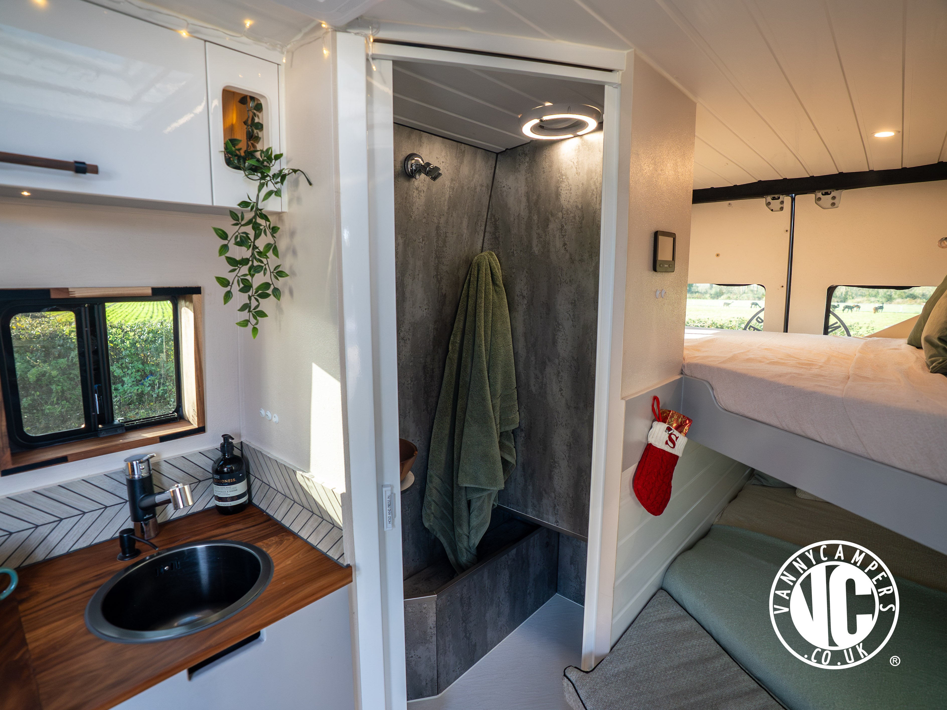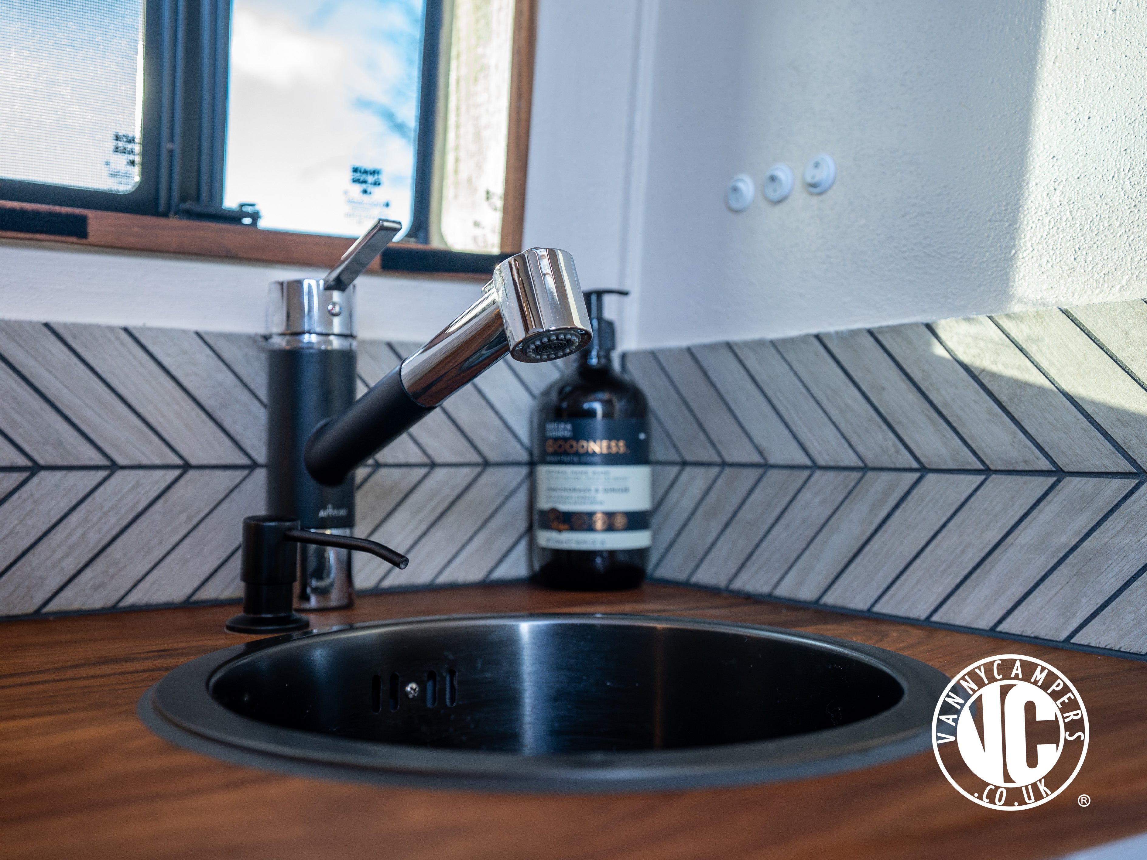 Crafted with care by the skilled team at Vanlife Builds, Sasha is more than just a camper she’s a whopping 5-berth sanctuary designed for your utmost enjoyment. Sleeping and seating five, there’s space and storage for the whole family and then some.