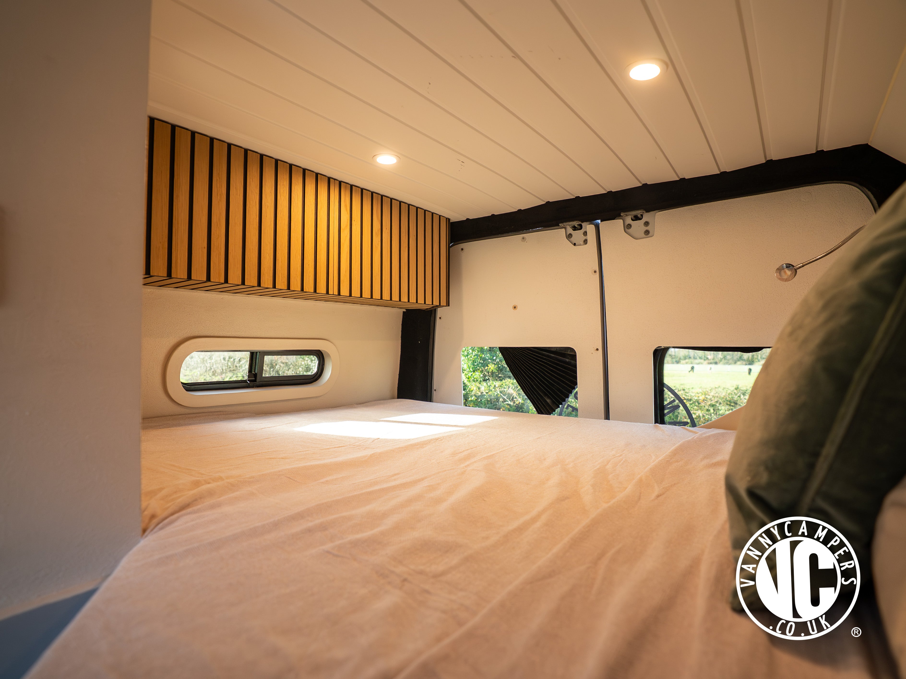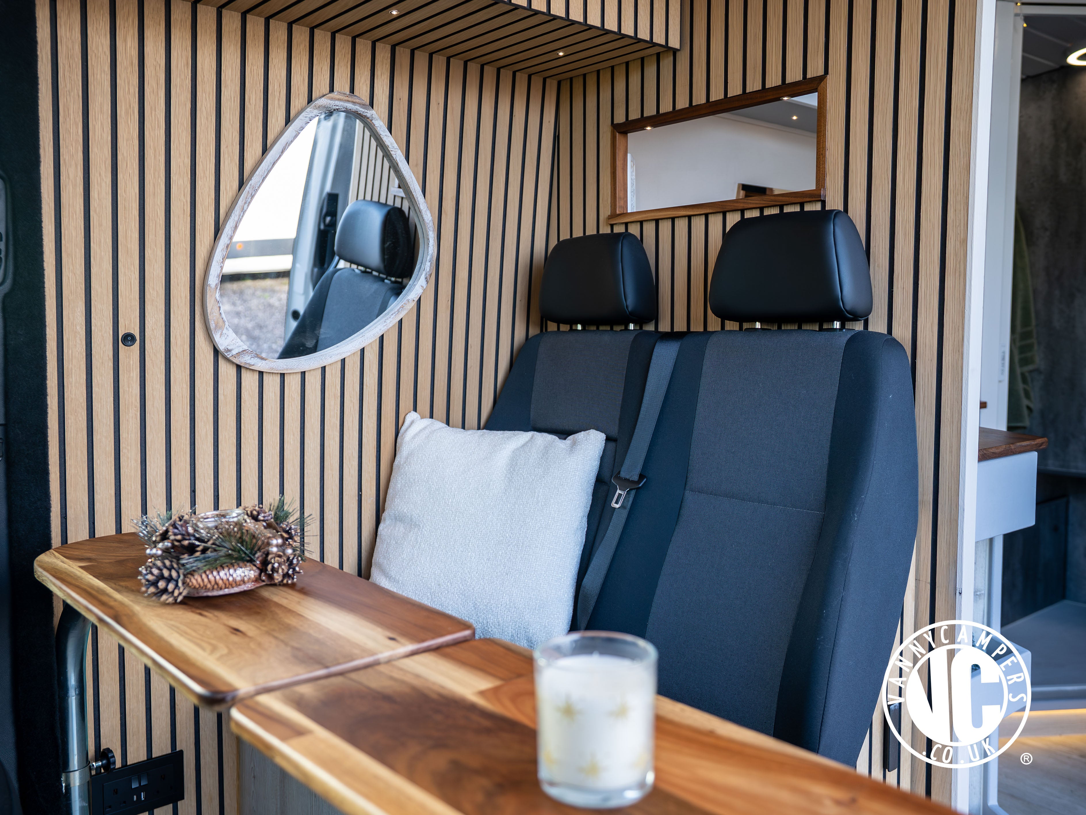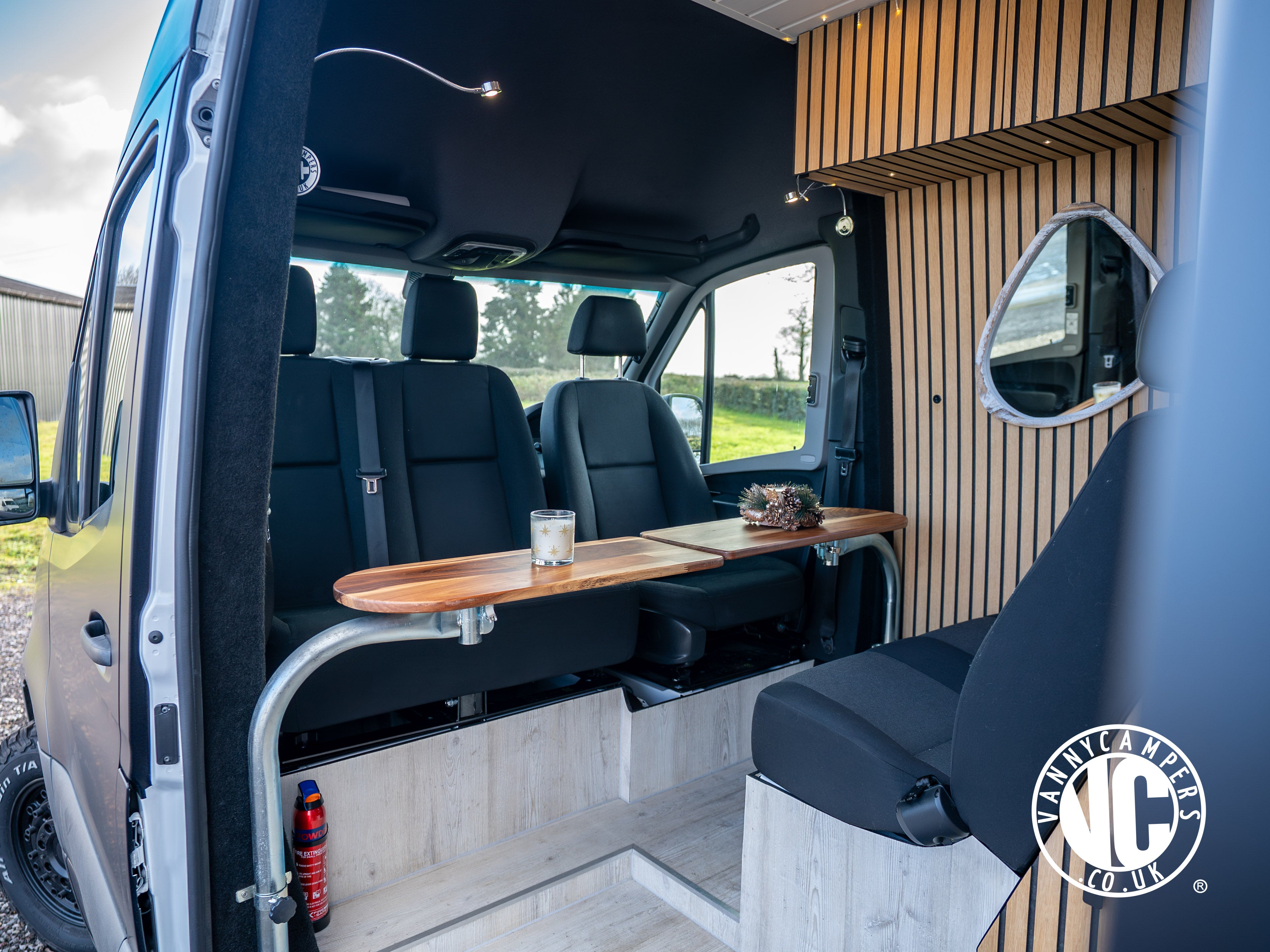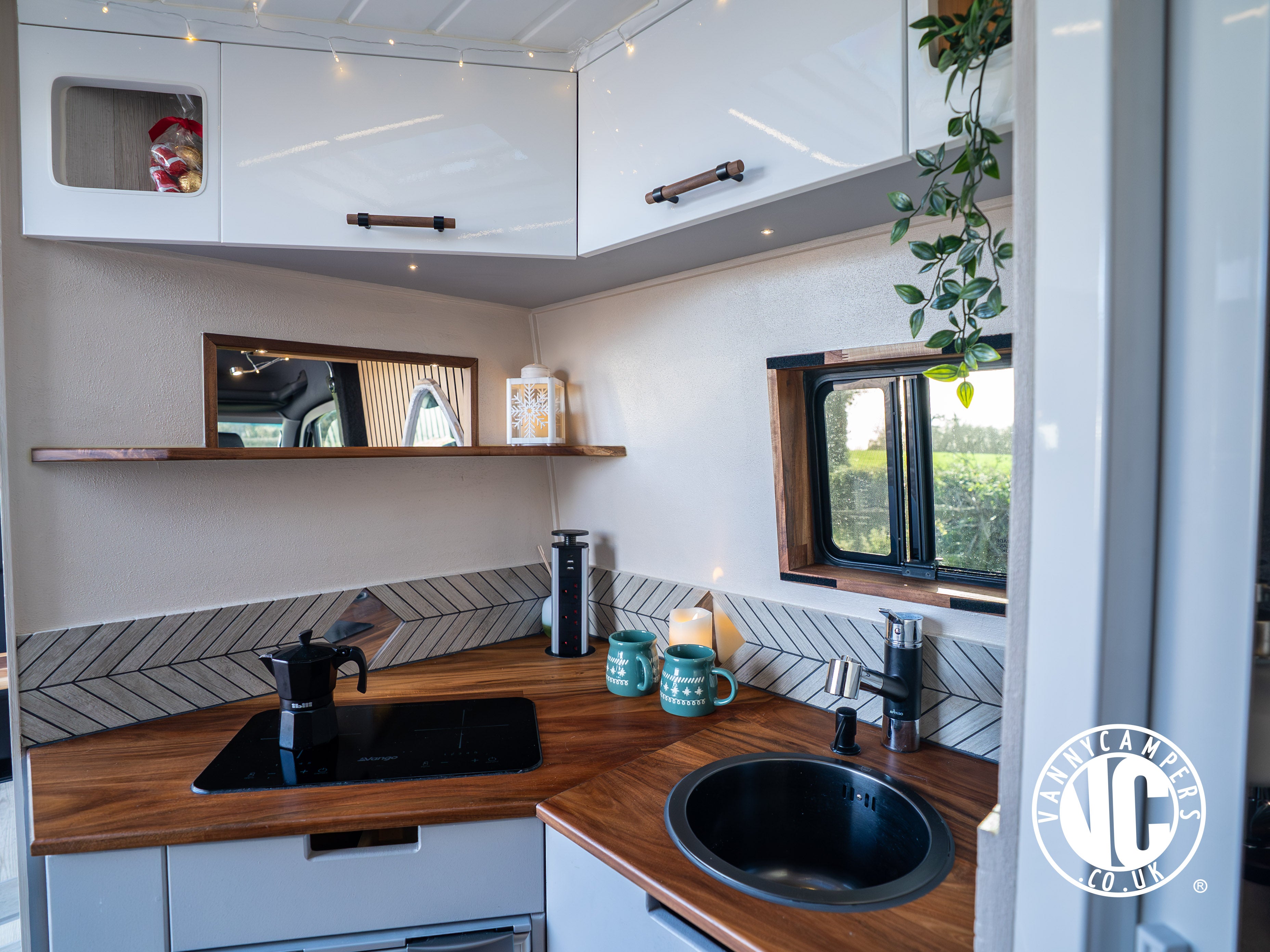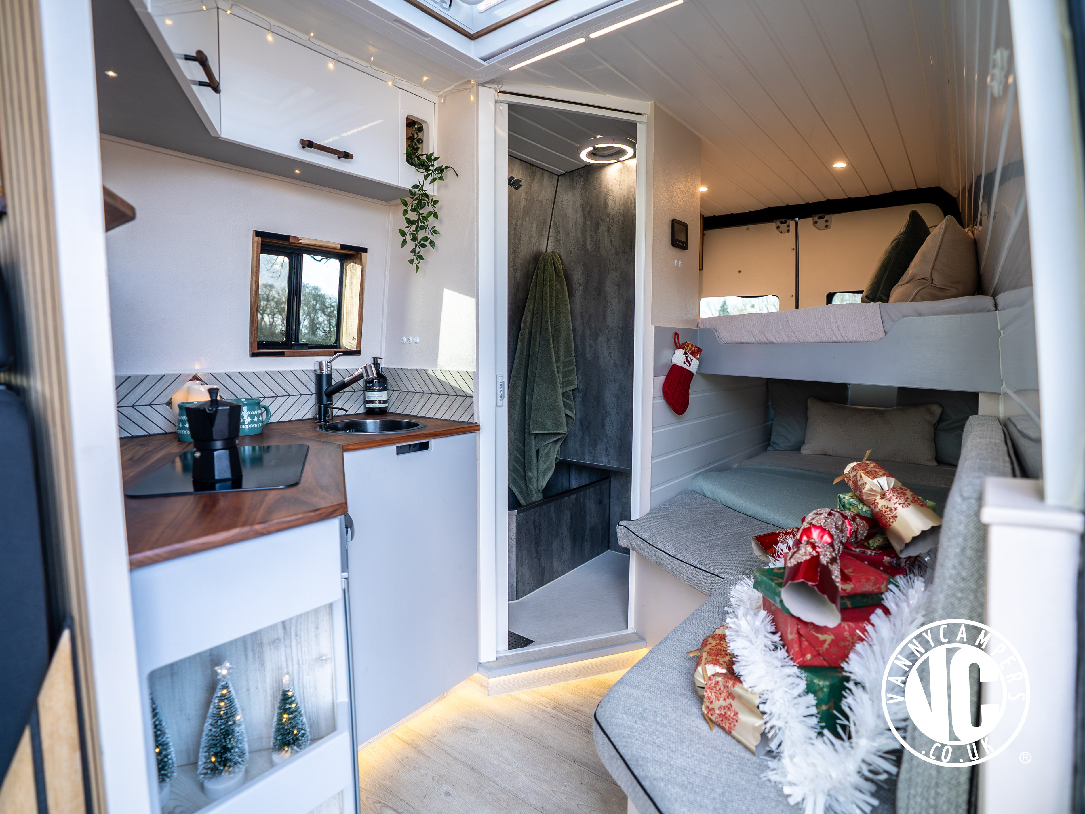 Crafted with care by the skilled team at Vanlife Builds, Sasha is more than just a camper she’s a whopping 5-berth sanctuary designed for your utmost enjoyment. Sleeping and seating five, there’s space and storage for the whole family and then some.