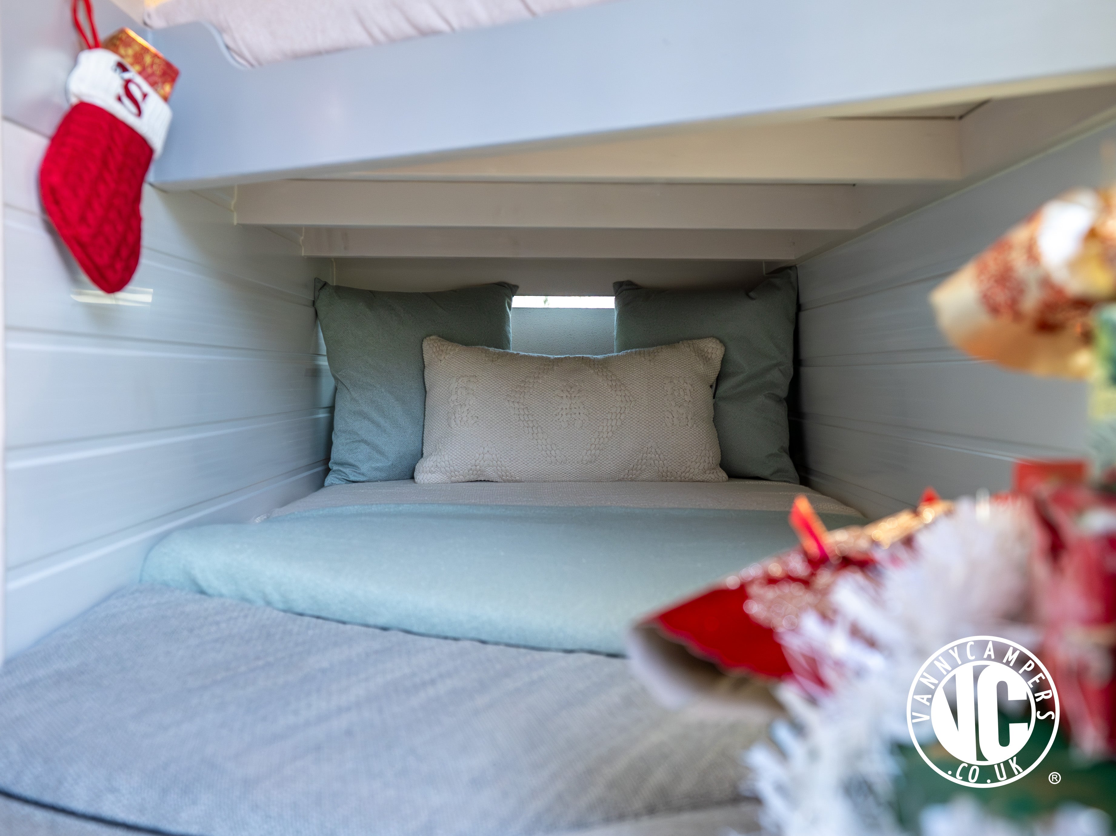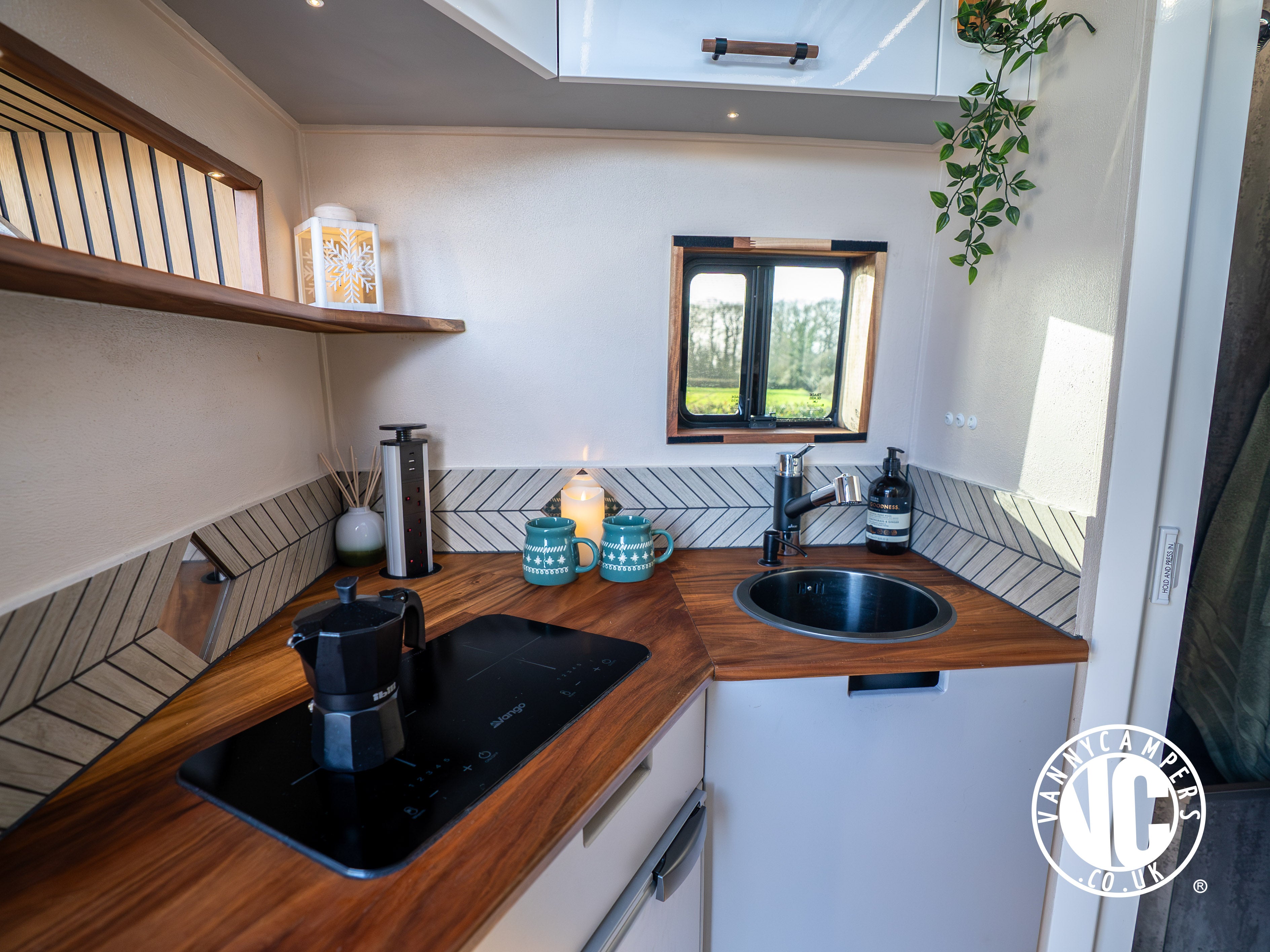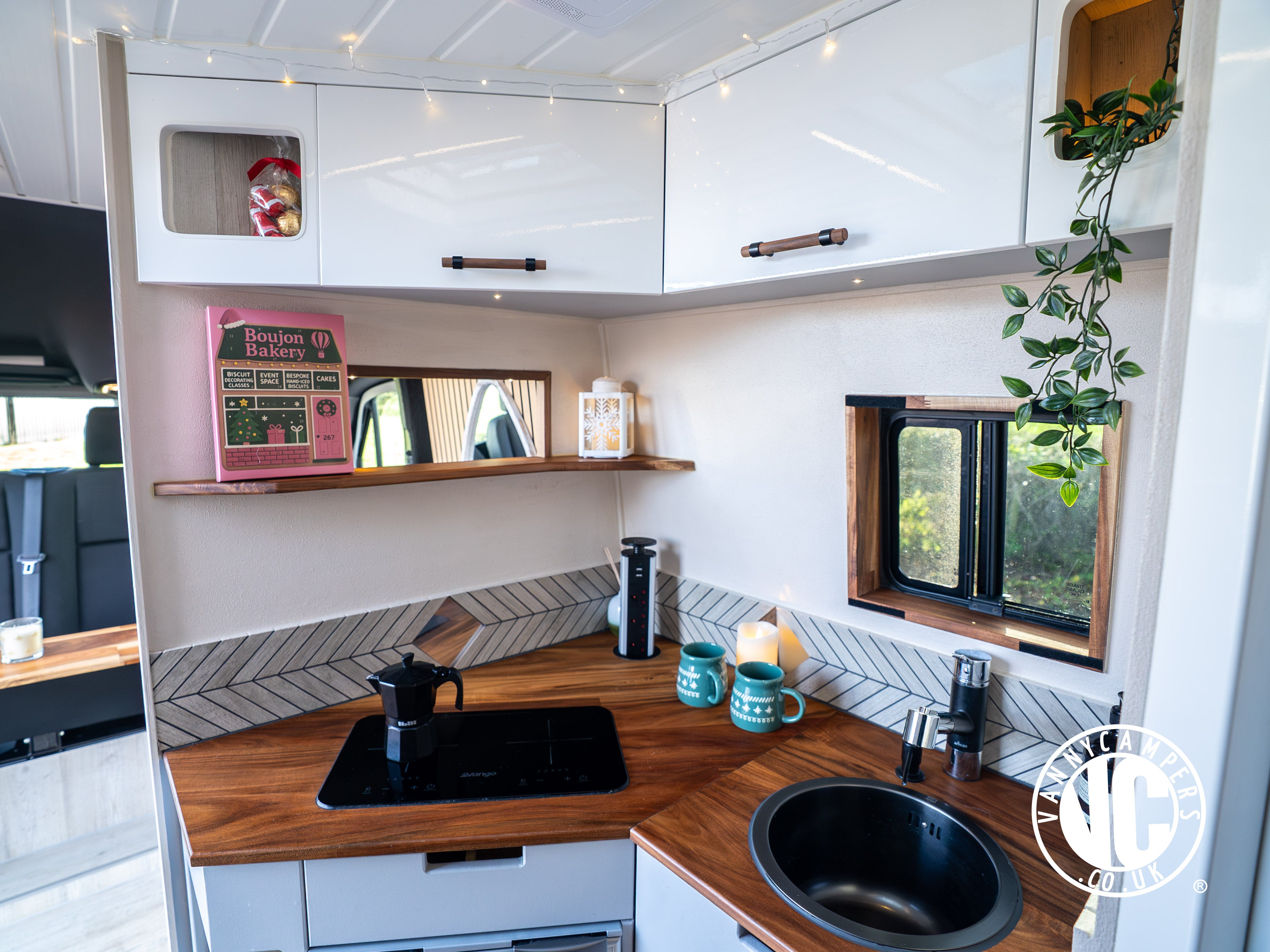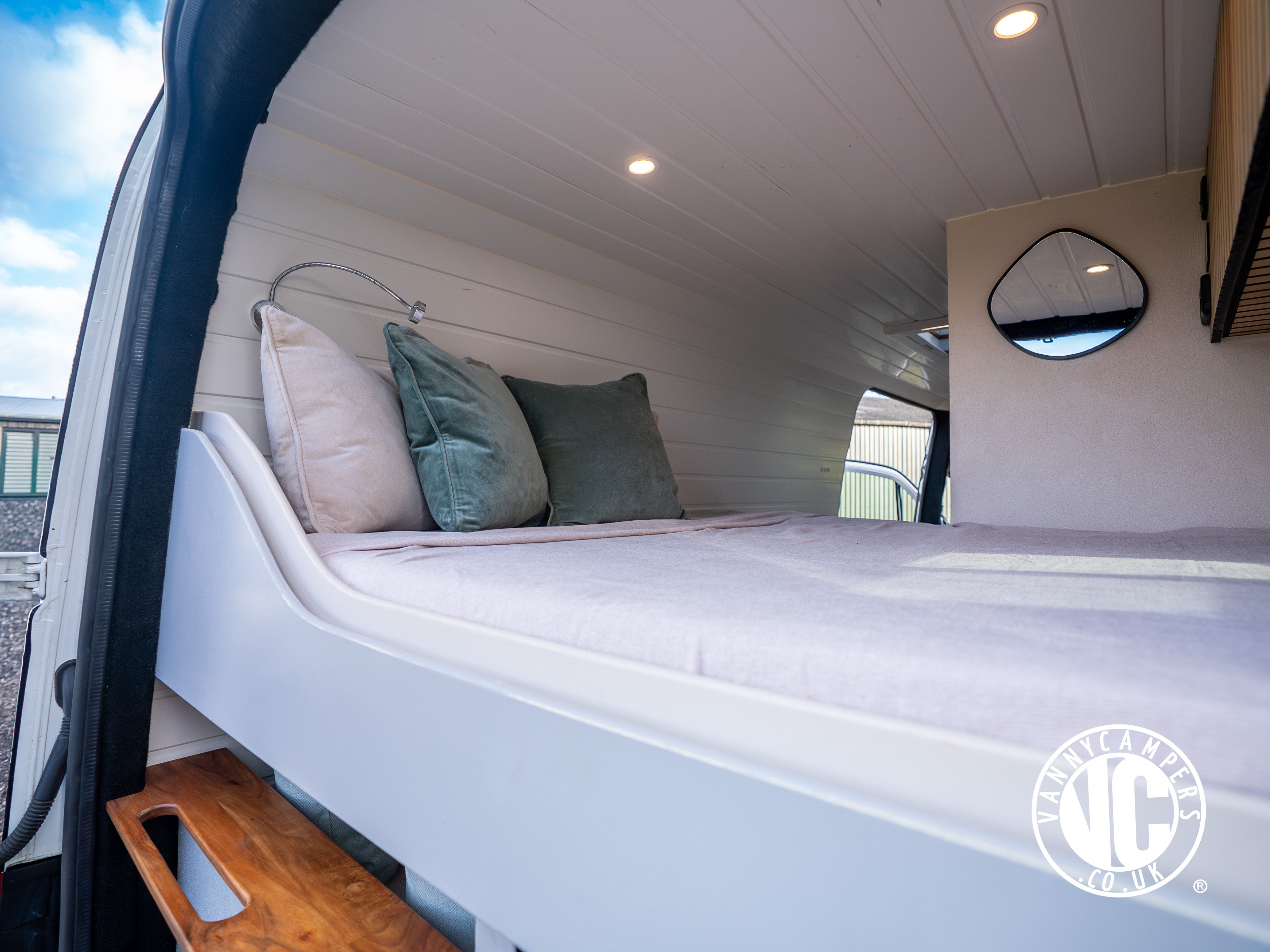 Crafted with care by the skilled team at Vanlife Builds, Sasha is more than just a camper she’s a whopping 5-berth sanctuary designed for your utmost enjoyment. Sleeping and seating five, there’s space and storage for the whole family and then some.